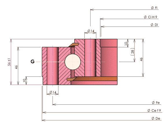 | Typorozměr | Vnější průměr | Vnitřní průměr | Výška | Váha (kg) | De | Di | Be | Bi | Ce | Ci | Fe | Ne | Fi | Ni | |